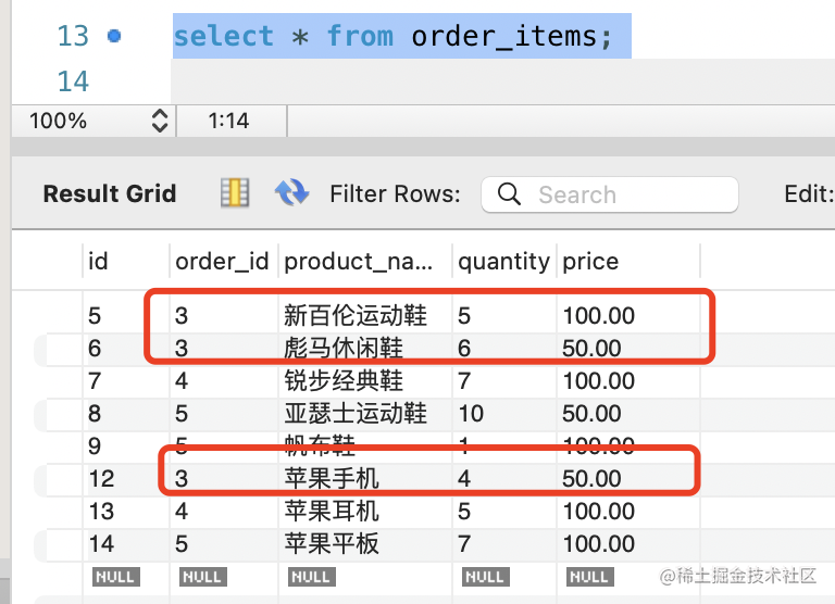 JOIN orders o ON c.id = o.customer_id;下面的 select 语句我们很熟悉,就是关联 customers、orders 表,查出一些字段。