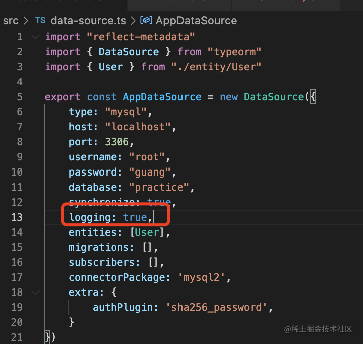 指定用 mysql2 包来连接,就是我们前面测试的那个。