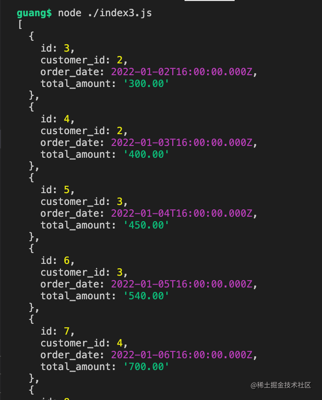 const [results, fields] = await connection.query('SELECT * FROM customers');