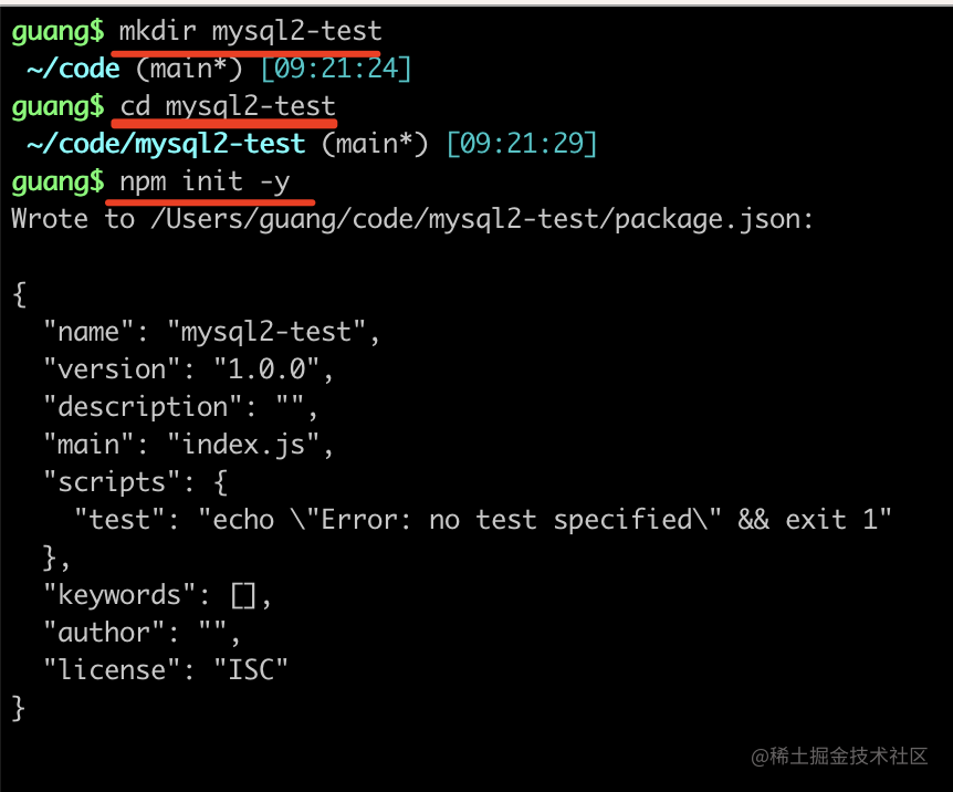 我们创建个目录,然后进入这个目录执行 npm init -y 创建 package.json。