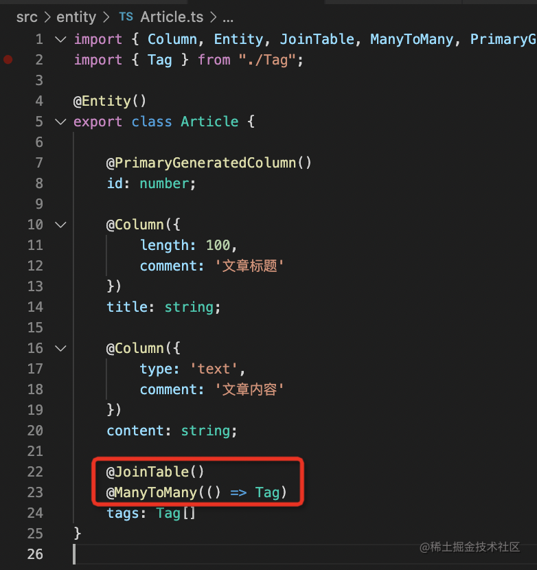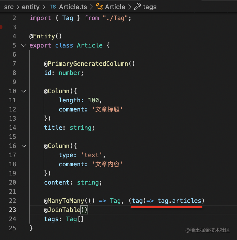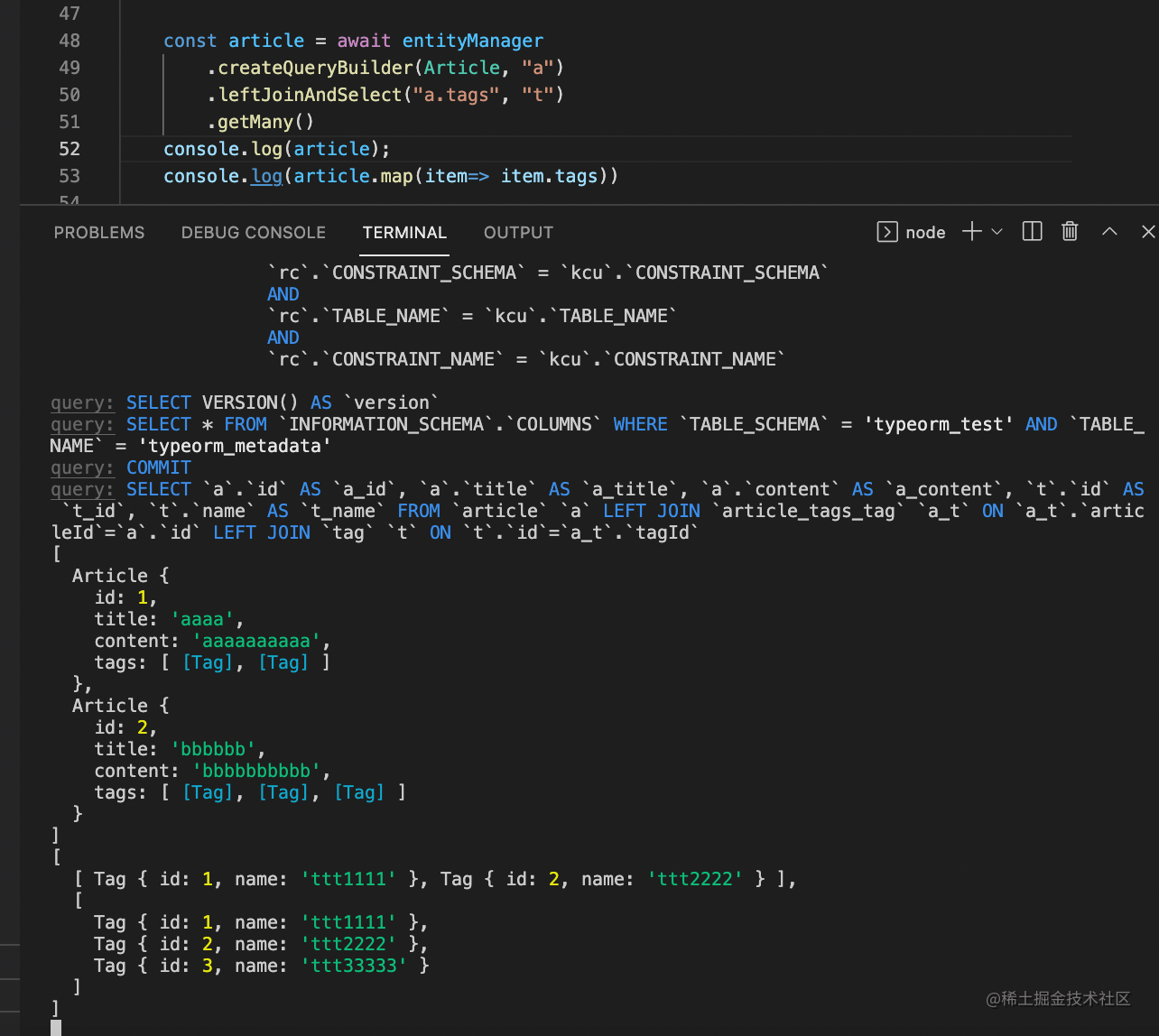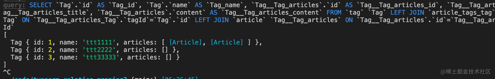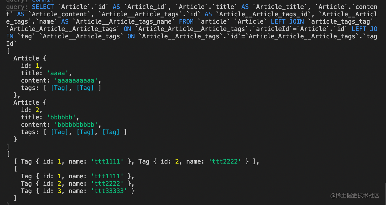 console.log(article.map(item=> item.tags))同样是通过 relations 指定关联查询: