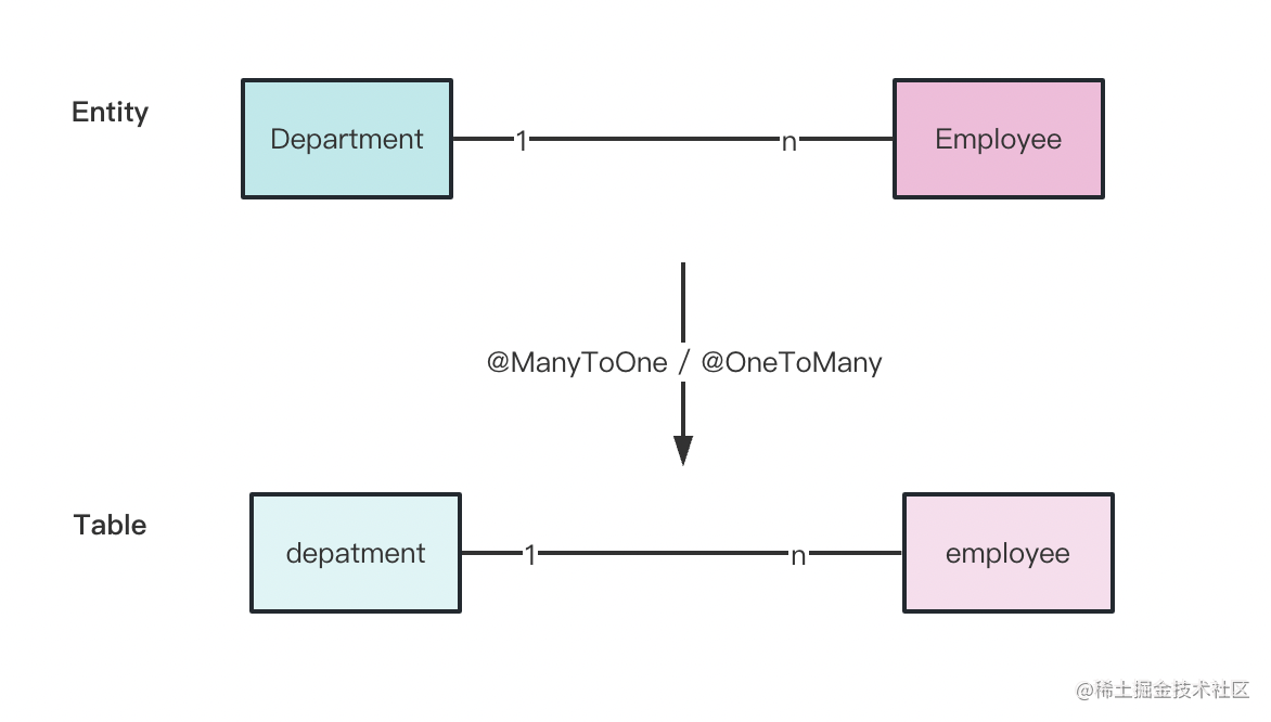 一对多我们是通过 @OneToMany 和 @ManyToOne 来把 Entity 映射成数据库表: