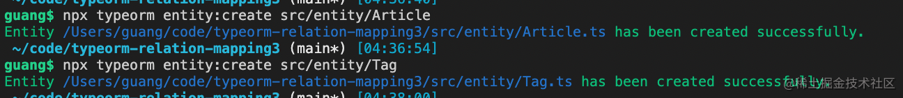 }).catch(error => console.log(error))创建了两篇文章,3 个标签,建立它们的关系之后,先保存所有的 tag,再保存 article。