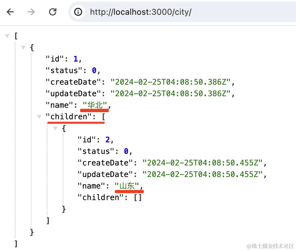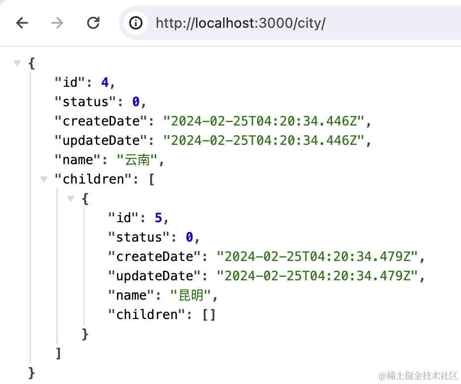 可以看到数据插入成功了,并且返回了树形结构的结果。