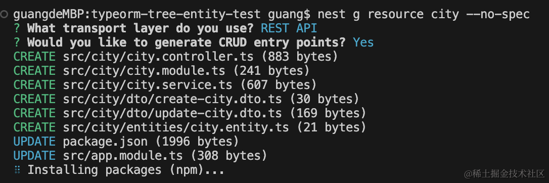 nest g resource city --no-spec