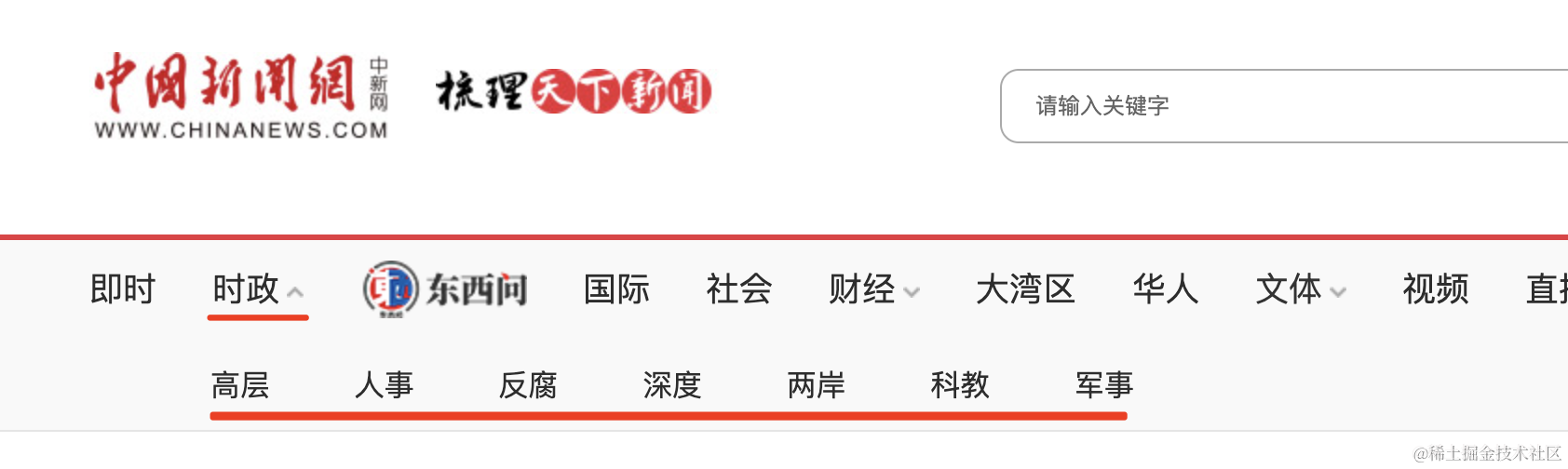 新闻网站的新闻分类: