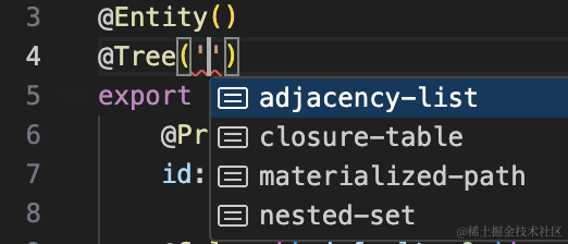 并且这个 entity 要用 @Tree 声明。