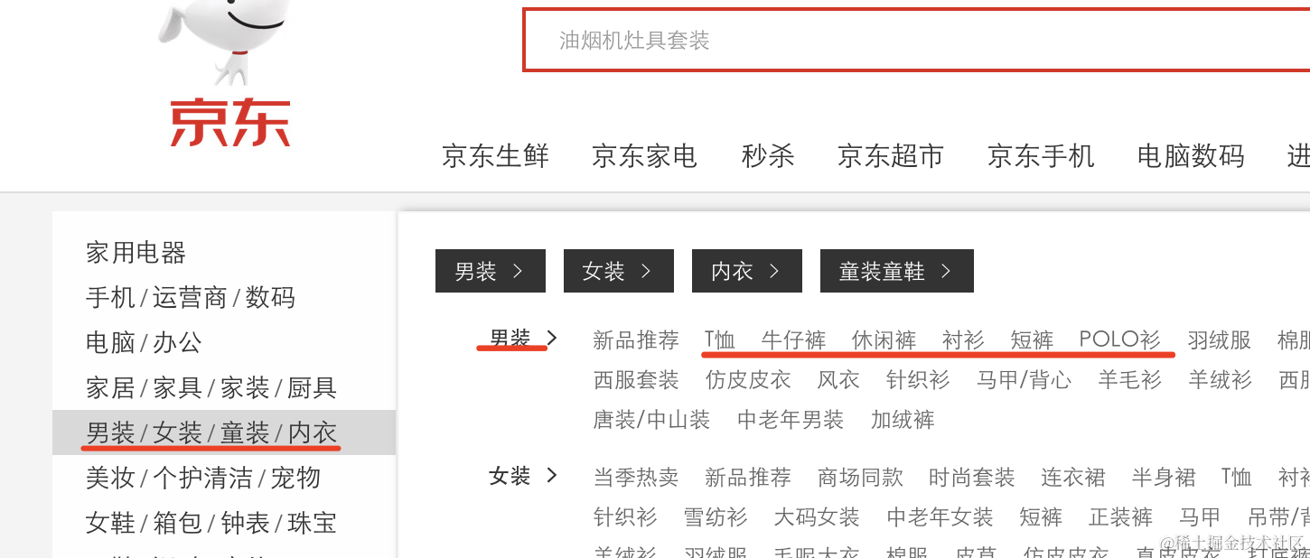 比如京东的商品分类: