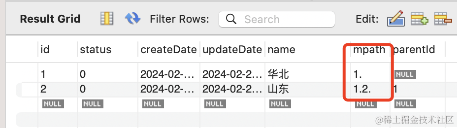 可以看到,它通过 mpath 路径存储了当前节点的访问路径,从而实现了父子关系的记录: