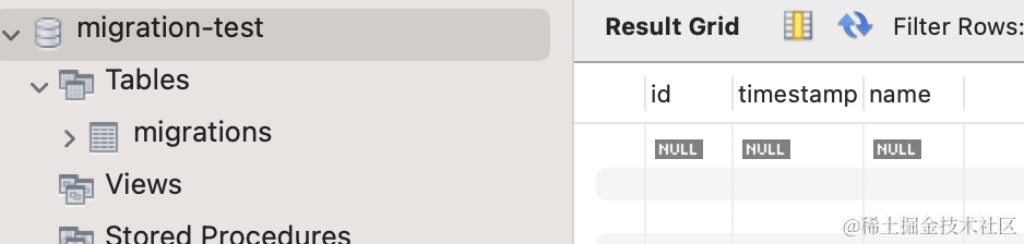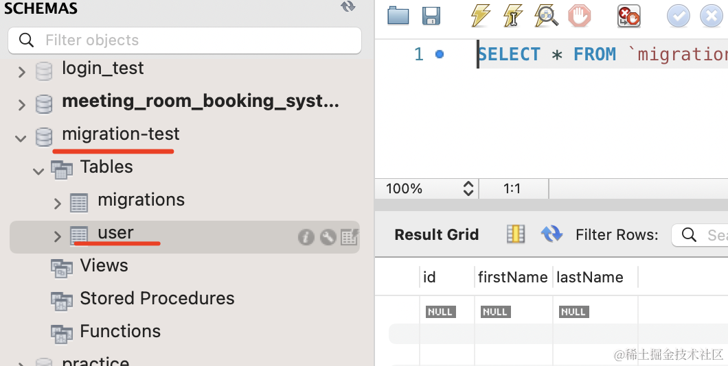CREATE SCHEMA `migration-test` DEFAULT CHARACTER SET utf8mb4 ;跑一下: