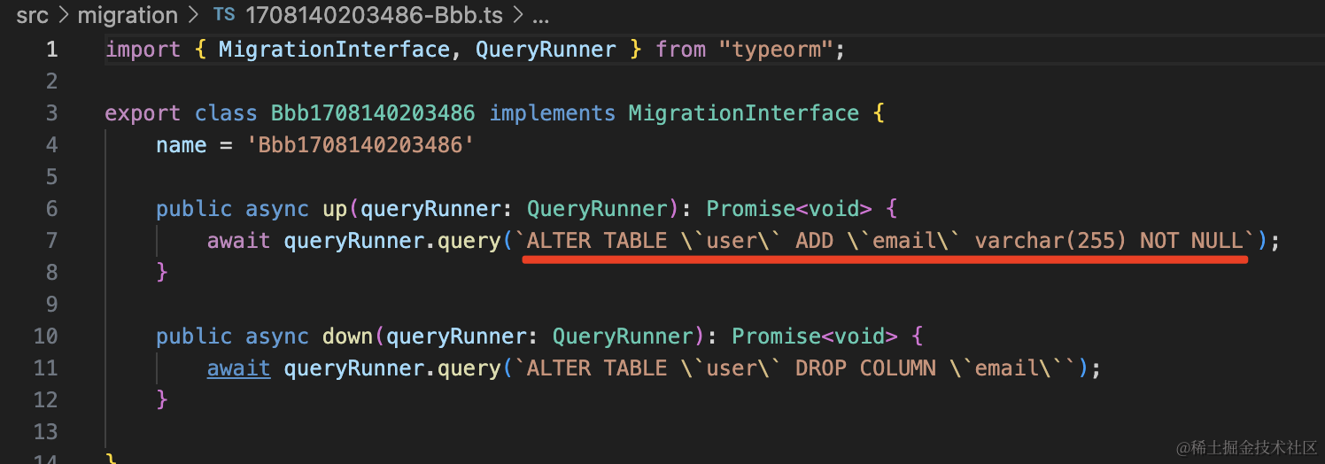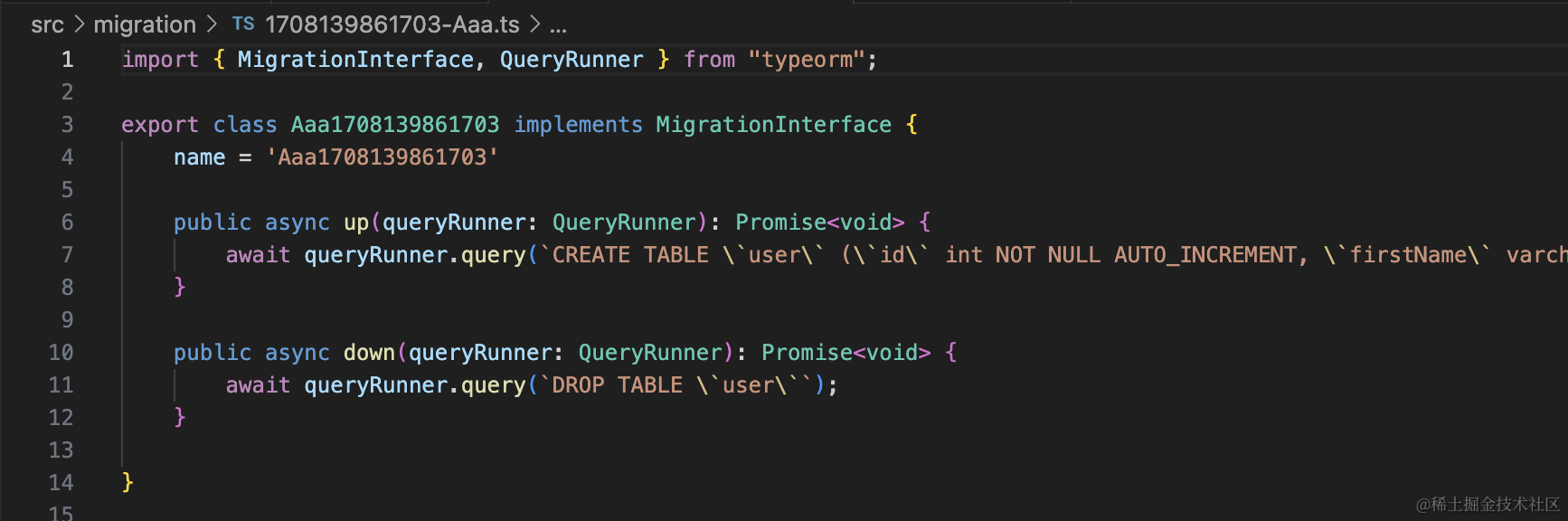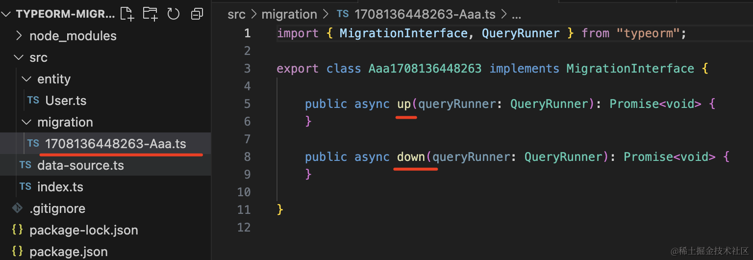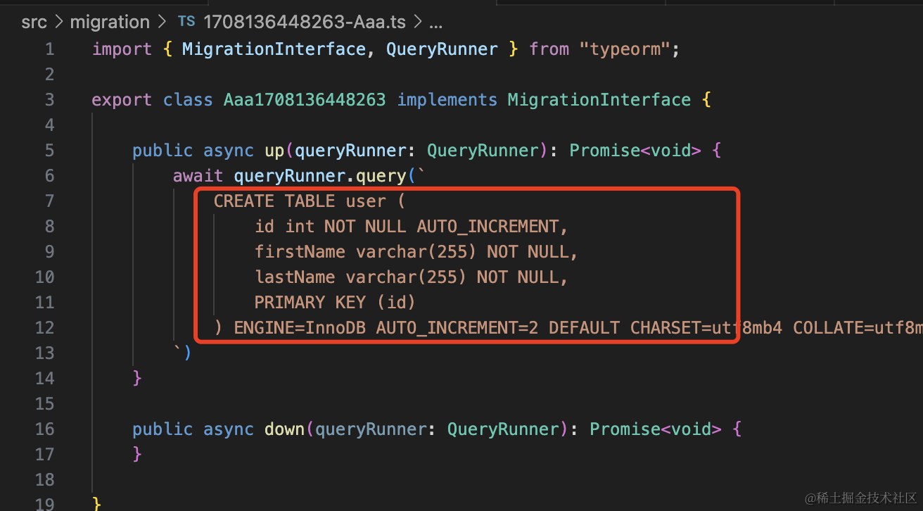 生成了 “时间戳-Aaa.ts” 文件,这个就是放迁移代码的: