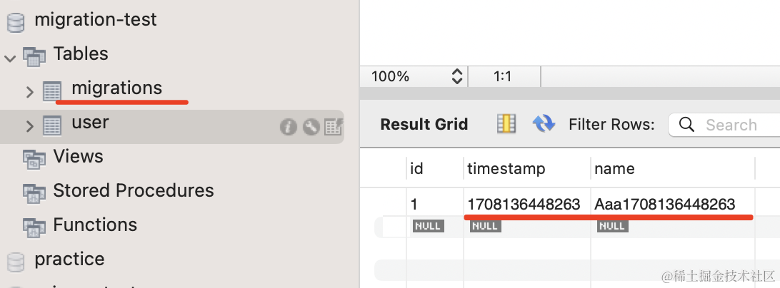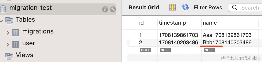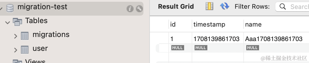 所以说,每一次的 migration 都是可控的,可以手动执行、也可以撤销。生产环境我们就是用 migration 来修改表结构,而不是 synchronize