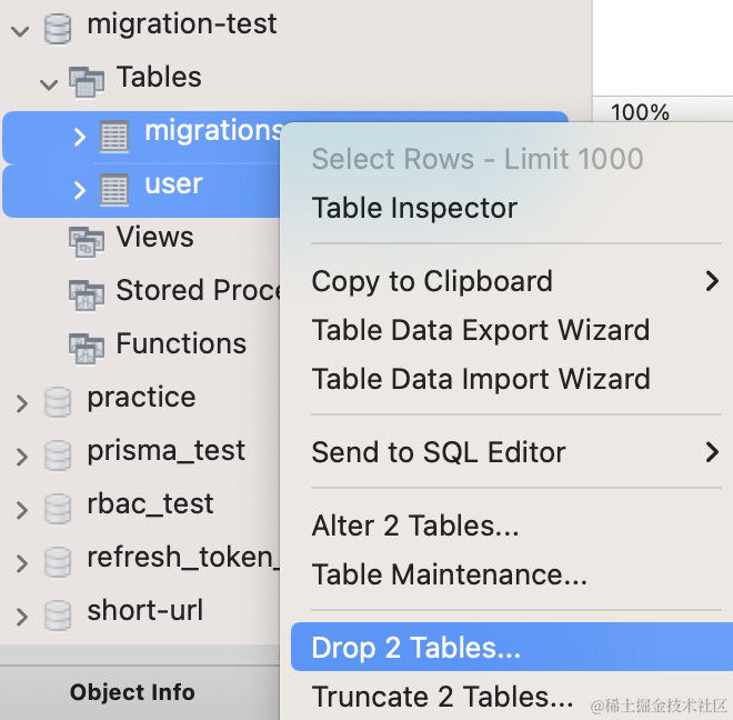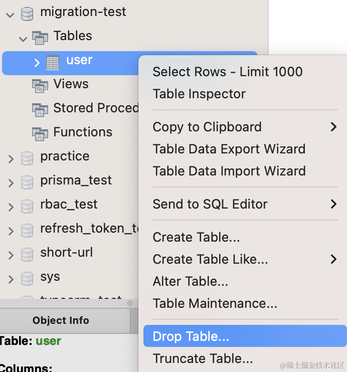 })先在 mysql workbench 里把之前的表删掉: