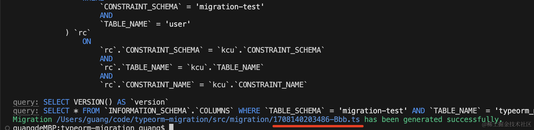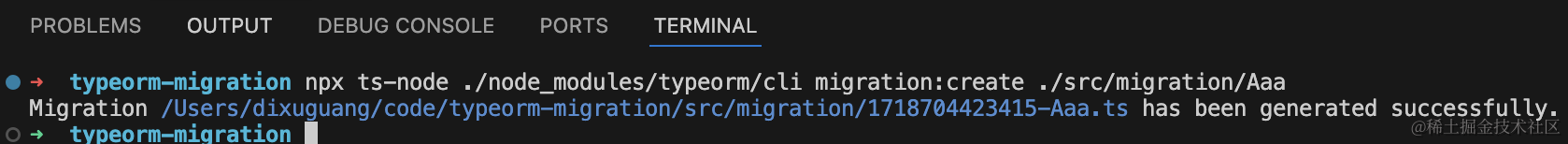 typeorm 提供了一个 cli,执行 migration:create 的命令:
