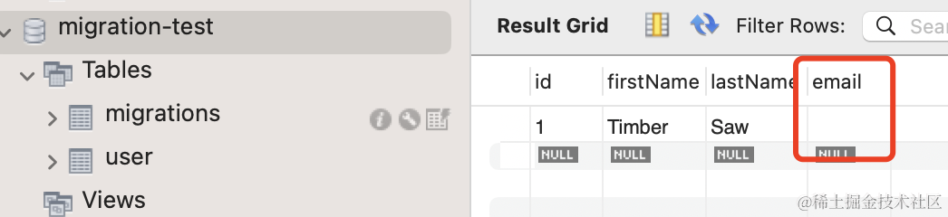 email: string再执行下 migration:generate