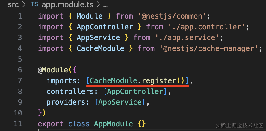 npm install @nestjs/cache-manager cache-manager在 AppModule 注册下: