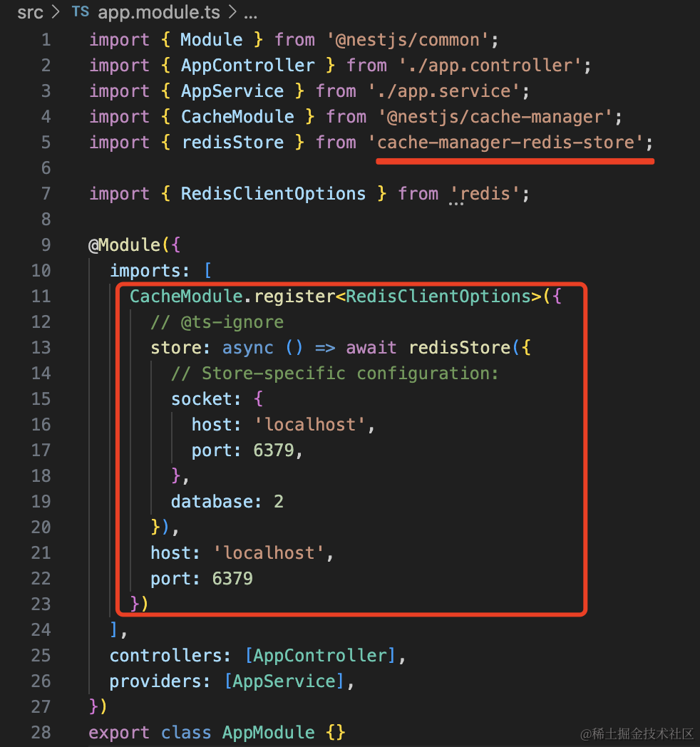 export class AppModule {}这里的 cache-manager-redis-store 要安装下: