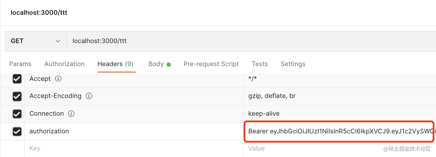 token 放在 authorization 的 header 里。