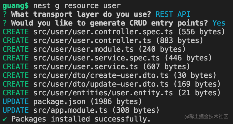 nest g resource user