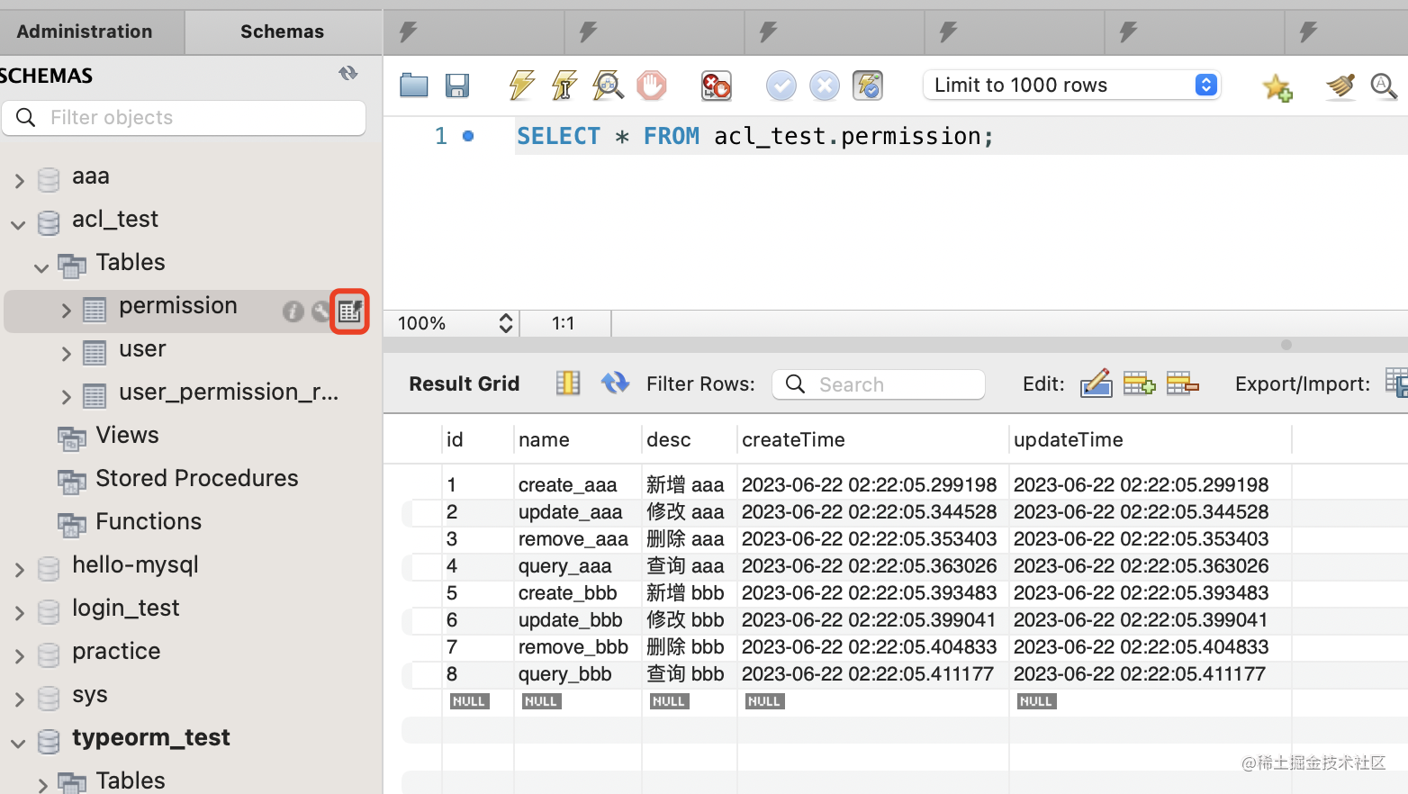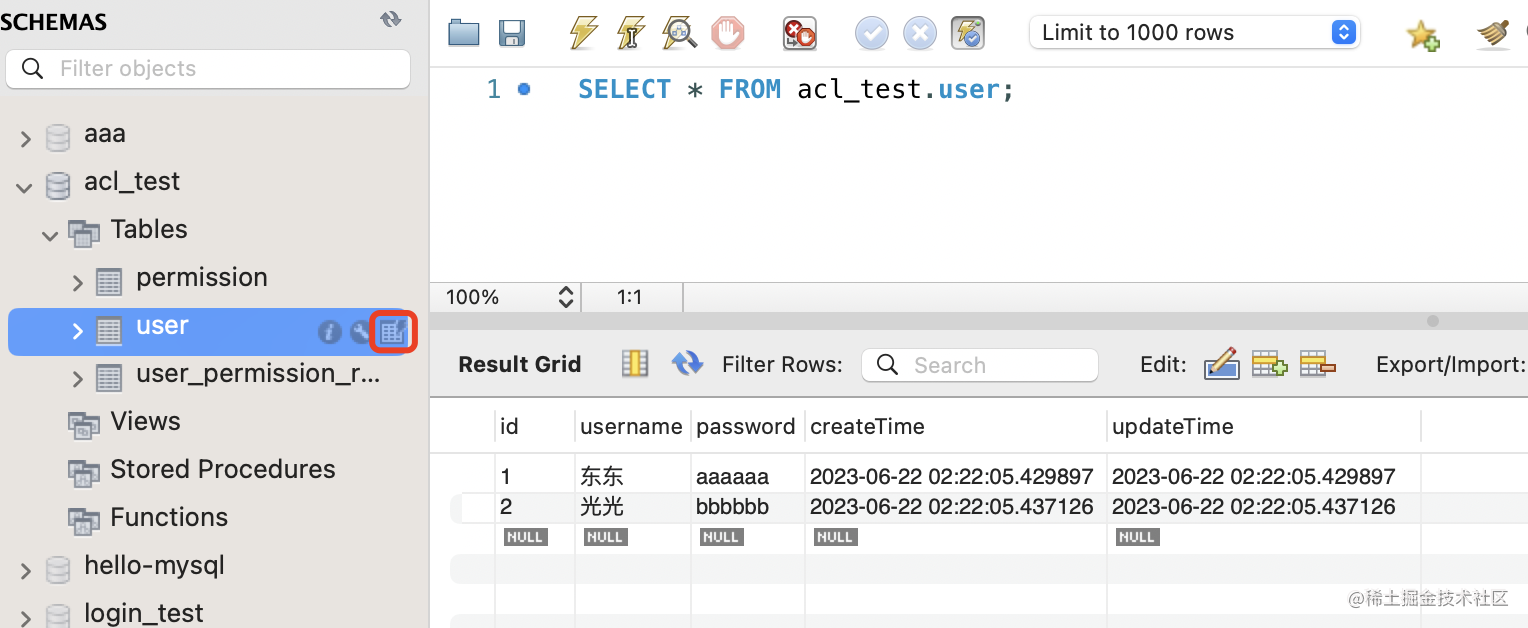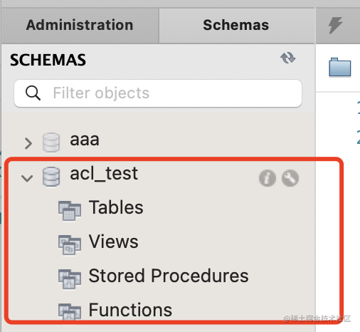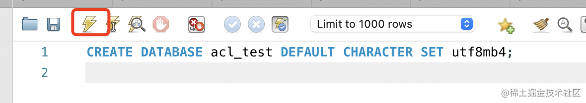 在数据库中创建 acl_test 的 database。