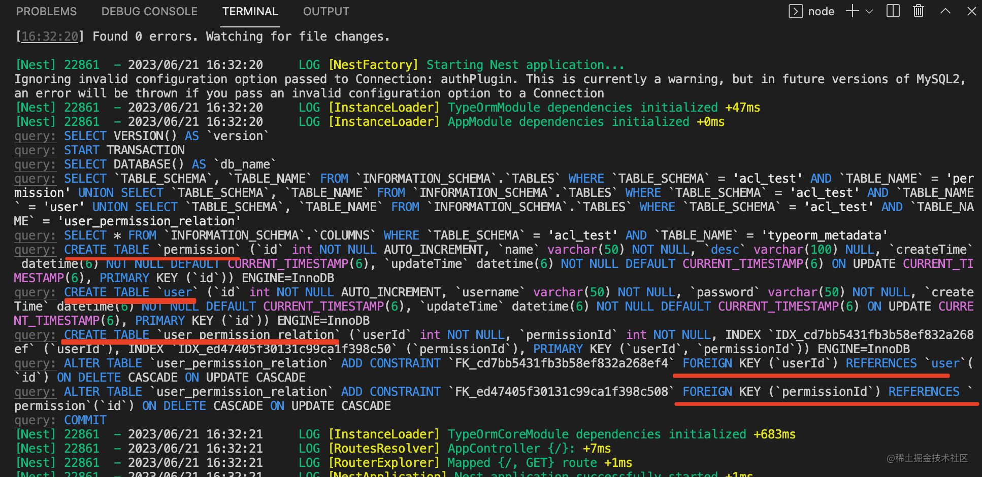 可以看到生成了 user、permission、user_permission_relation 这 3 个表。