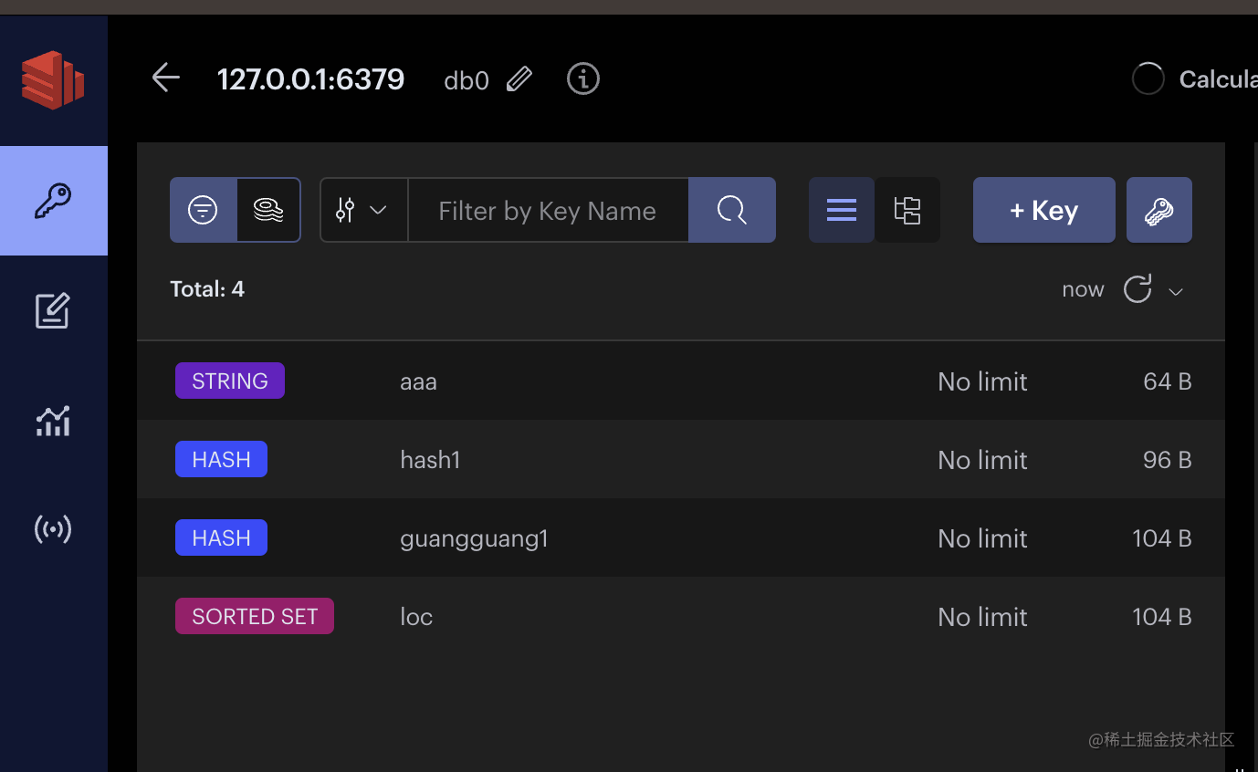 在 RedisInsight 里看到的也是这些: