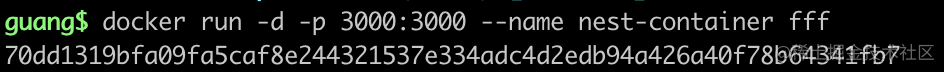 docker run -d -p 3000:3000 --name nest-container fff