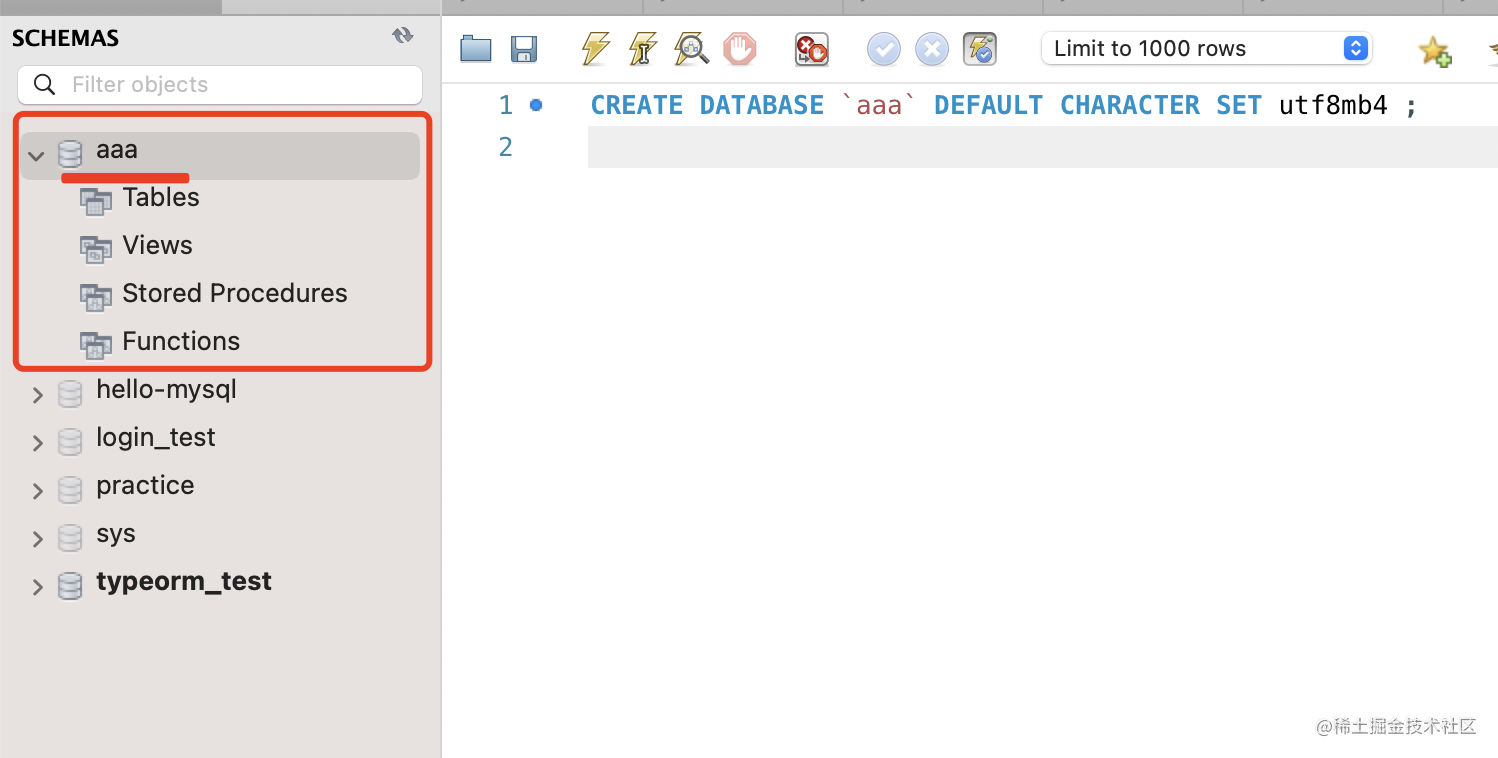 export class AppModule {}这里的 database 我们在 mysql workbench 里创建下: