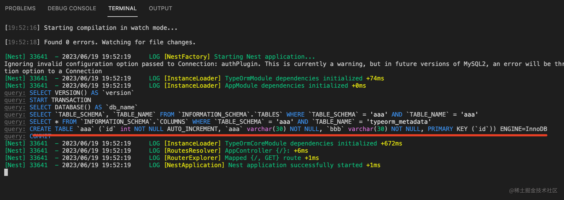 可以看到,执行了 create table 的 sql。