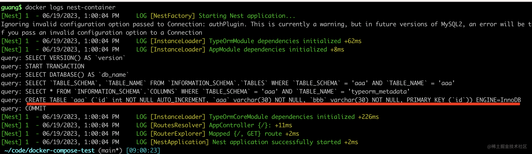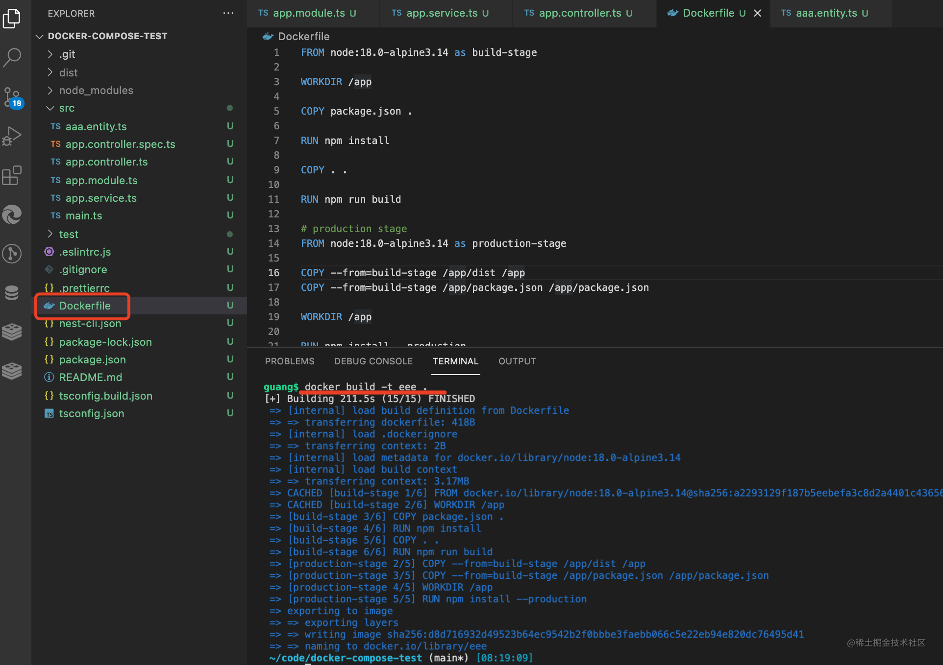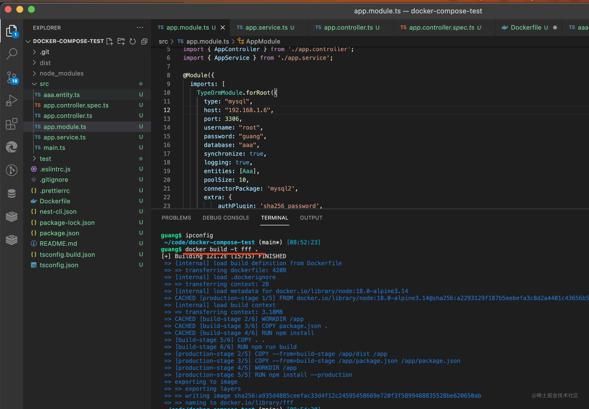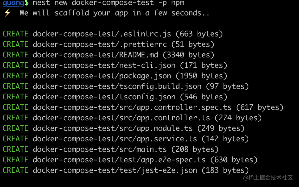 nest new docker-compose-test -p npm创建个 nest 项目: