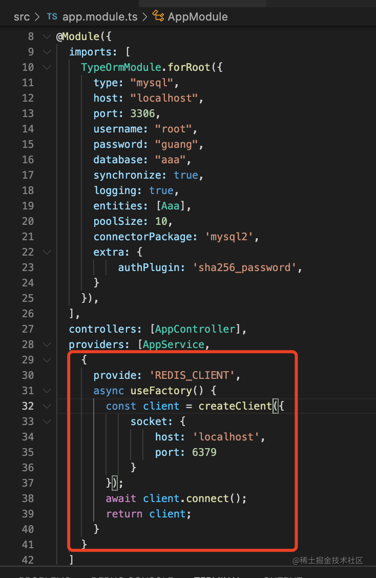 npm install redis 添加一个 redis client 的 provider: