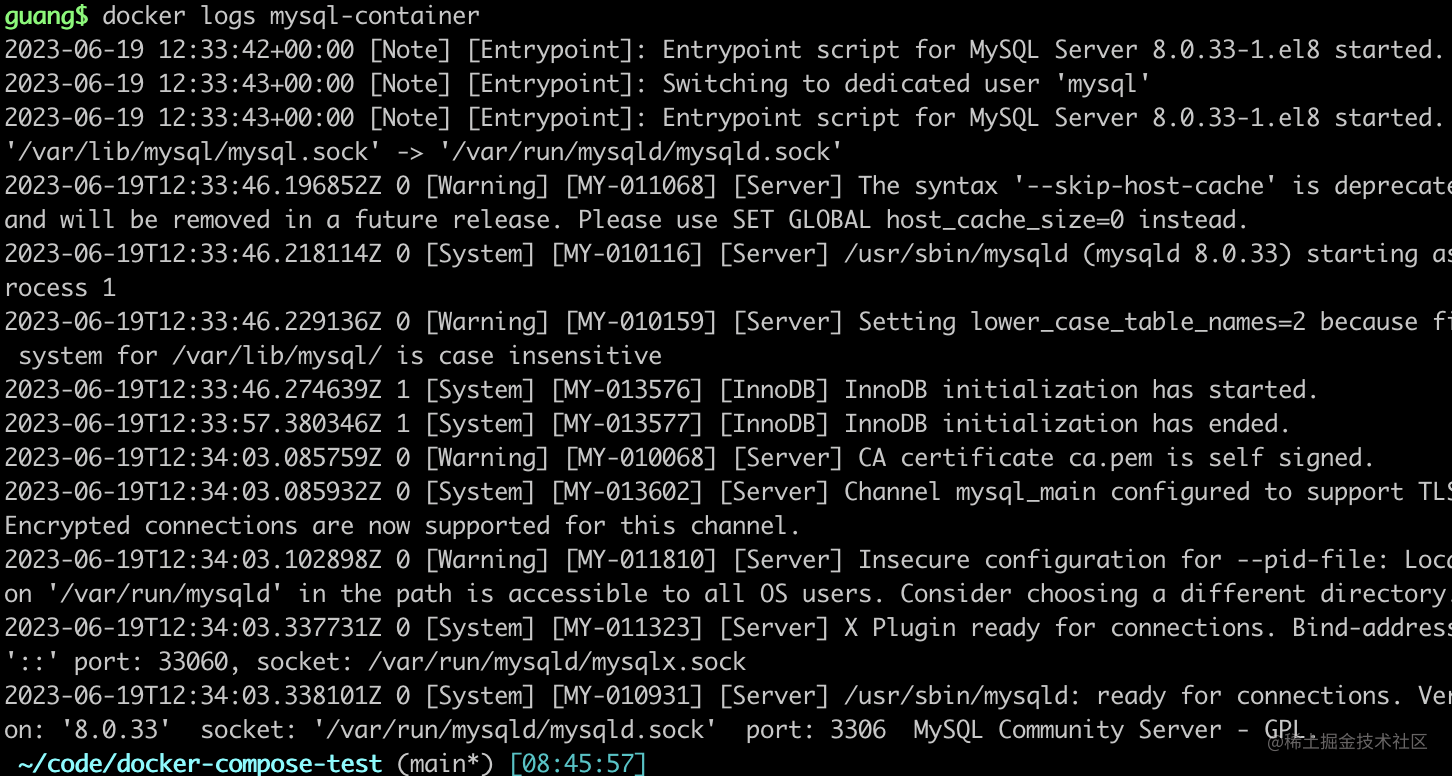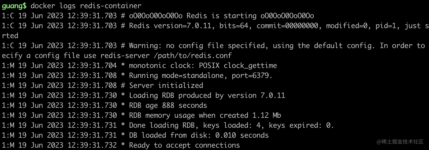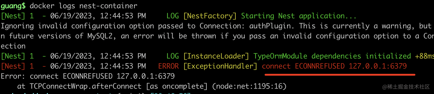 再次 docker logs 看看:
