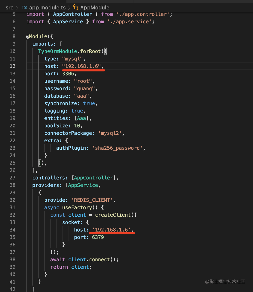 然后把 AppModule 里的 redis 和 mysql 连接信息改一下: