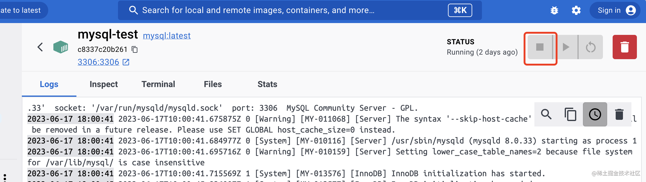 我们先把 mysql、redis 的容器停掉。