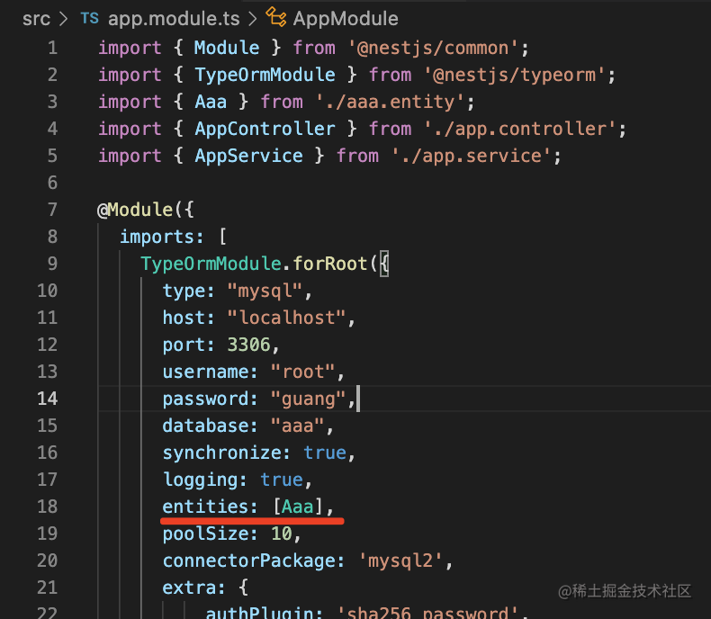 npm install --save @nestjs/typeorm typeorm mysql2然后在 AppModule 引入 TypeOrmModule: