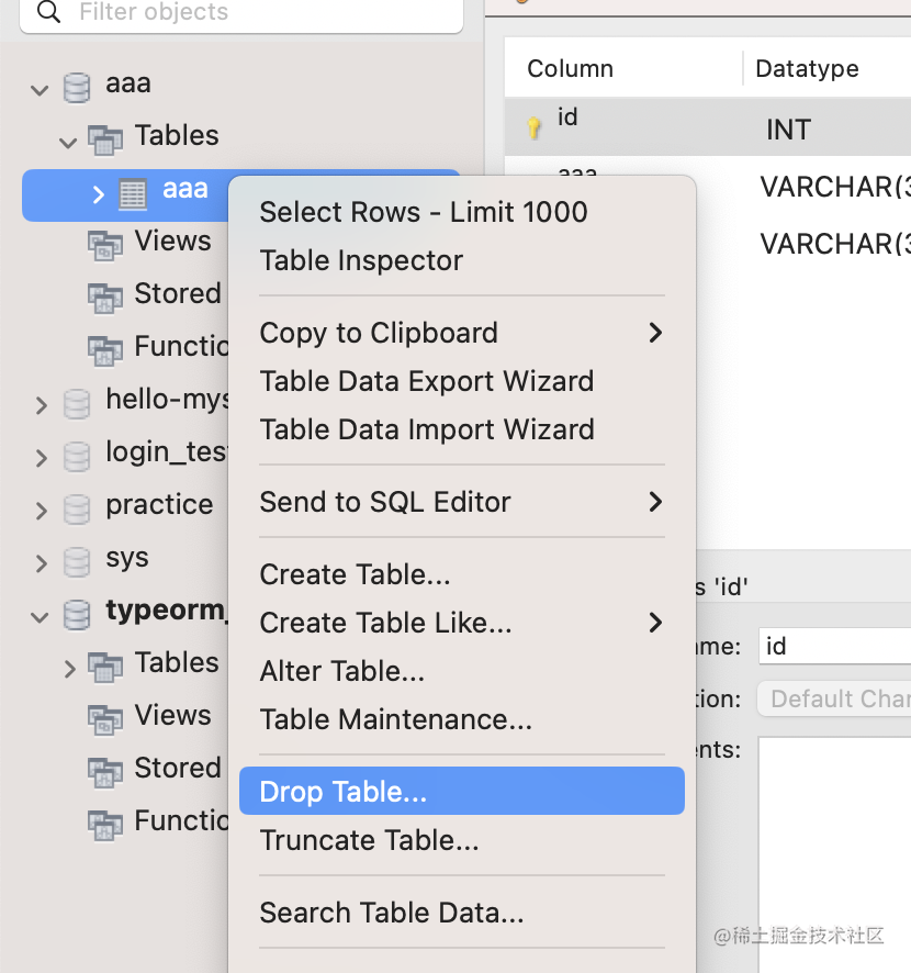 然后在数据库里把 aaa这个表删掉: