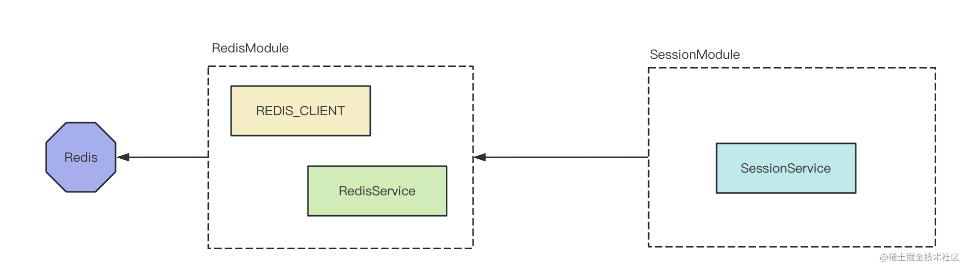 在 RedisModule 创建连接 redis 的 provider,导出 RedisService,并把这个模块标记为 @Global 模块