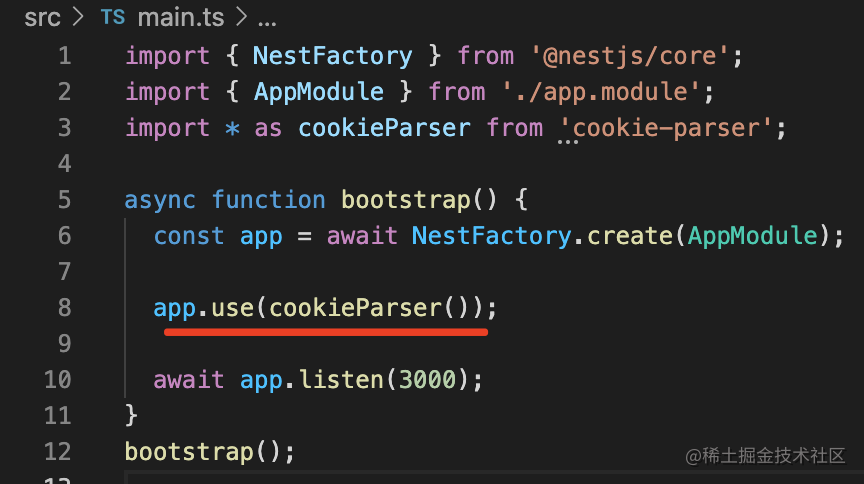 }这里用到 cookie,需要安装 cookie-parser 的包: