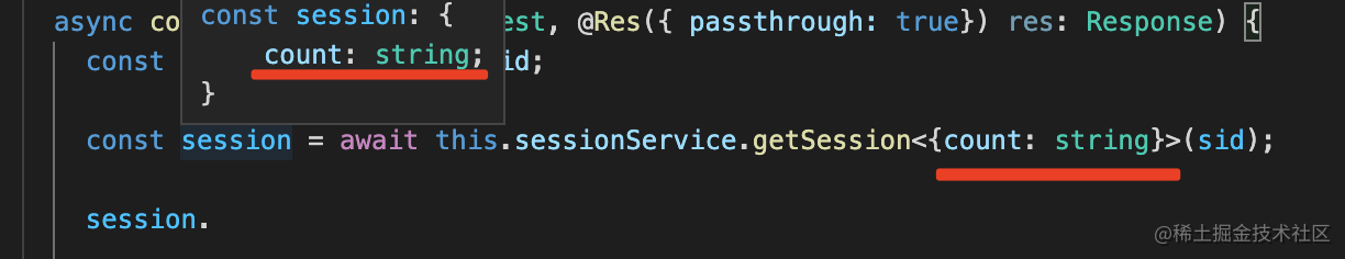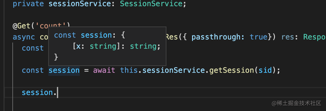 现在 getSession 返回的是 Record<string, any> 也就是对象类型,但并不知道有啥具体的属性。