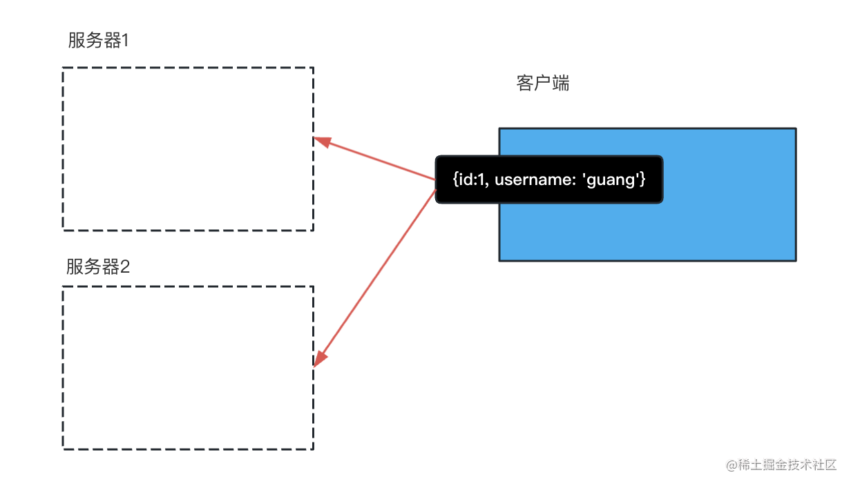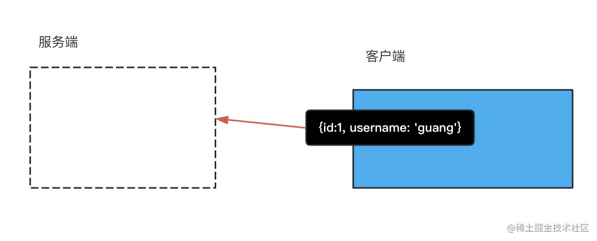 而 jwt 是把所有的用户数据保存在加密后的 token 里返回,客户端只要在 authorization 的 header 里带上 token,服务端就能从中解析出用户数据。