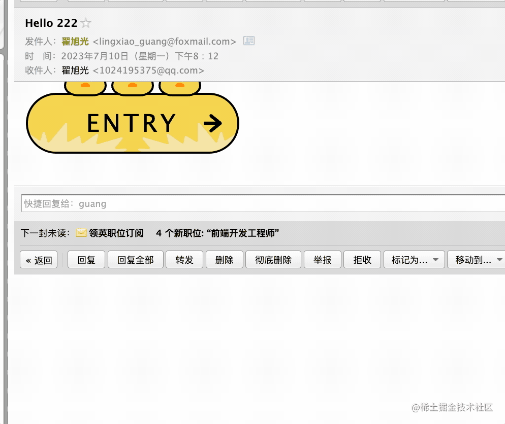 收到的邮件也渲染出了这个 html,并且 css 动画也是正常的: