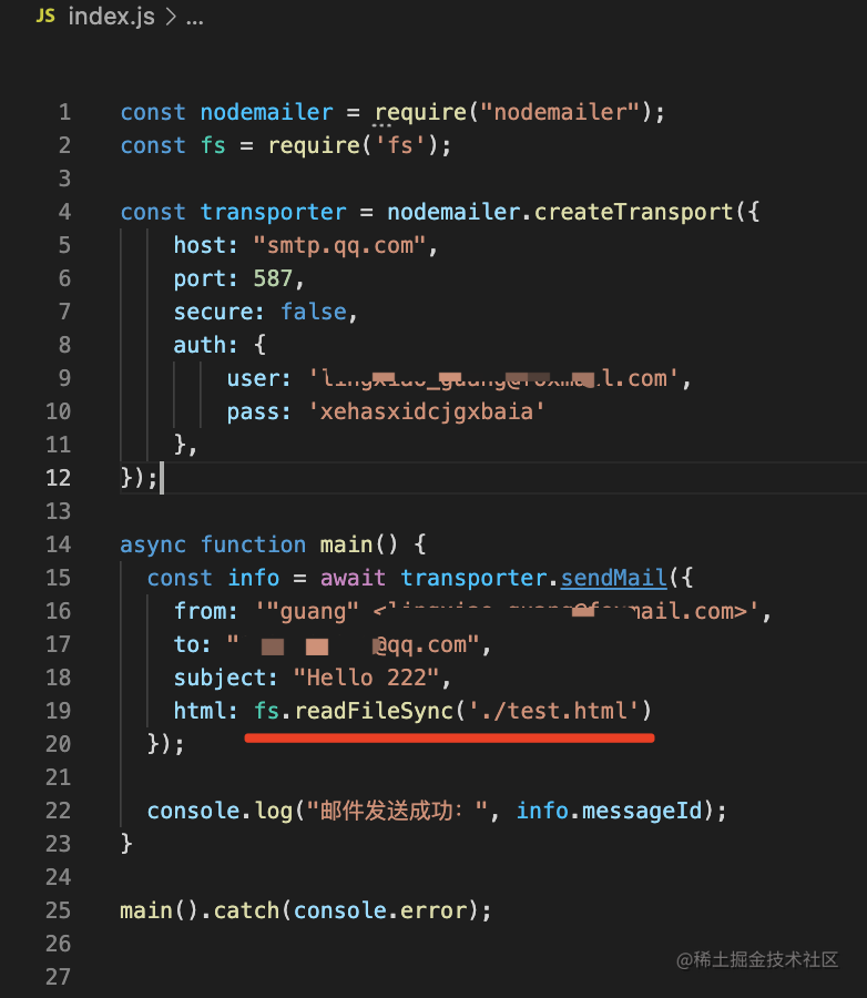 main().catch(console.error);安装 nodemailer 包,然后执行上面的代码: