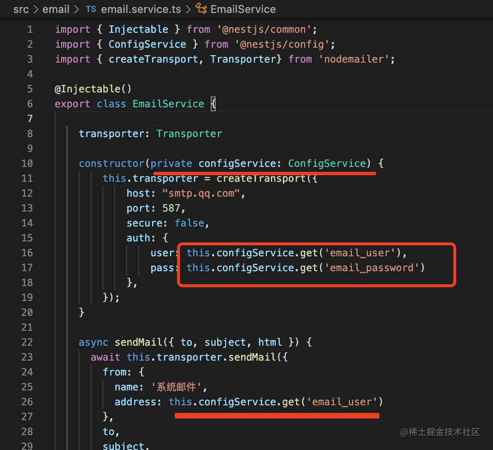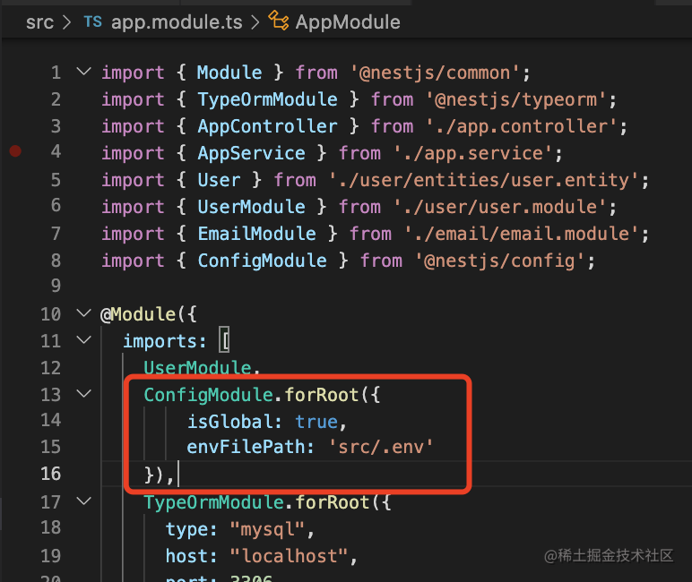 并且使用 @nestjs/config 包的 ConfigModule 来封装配置。