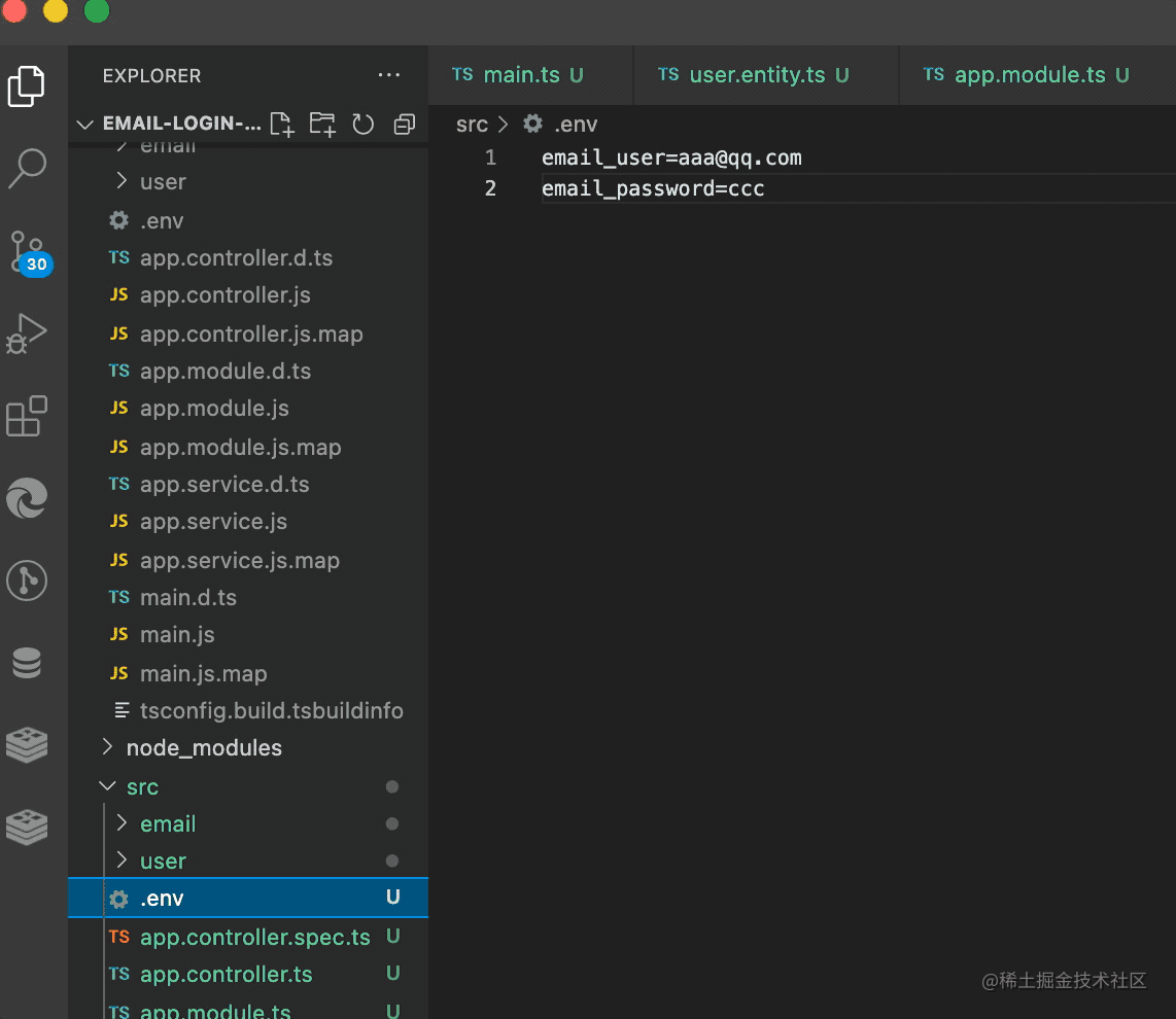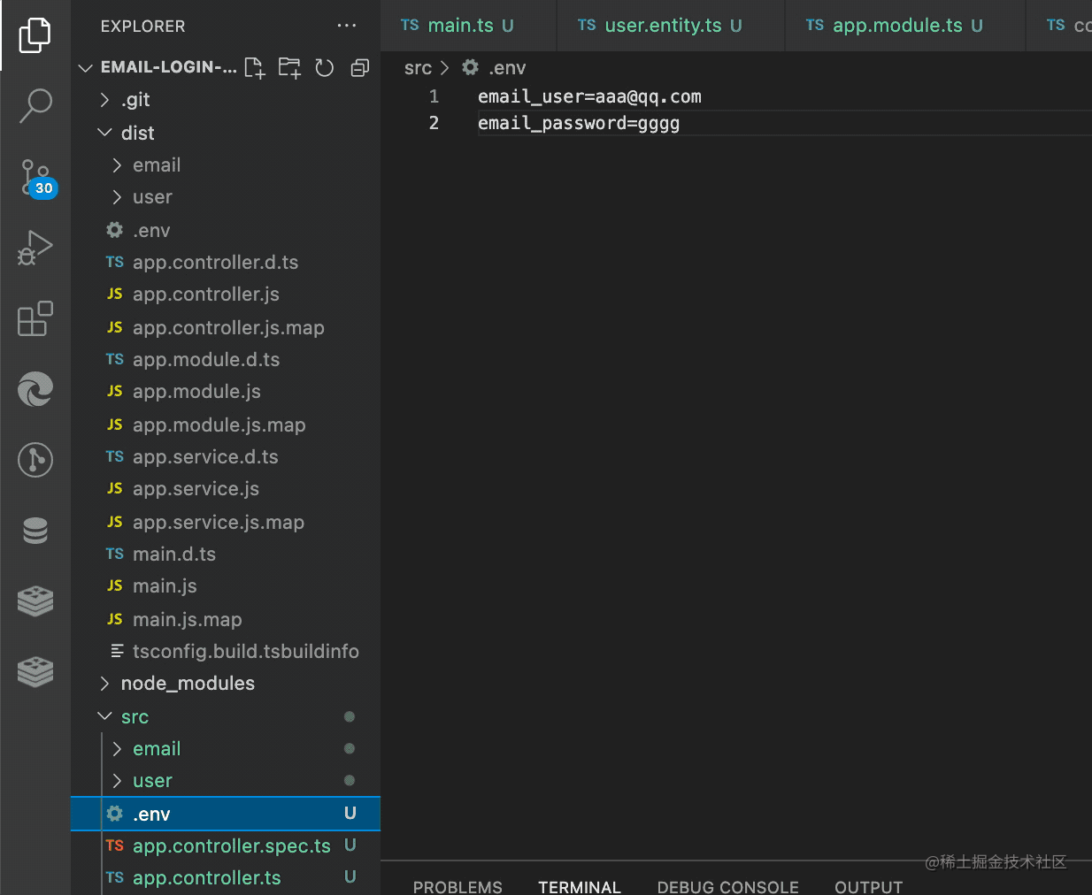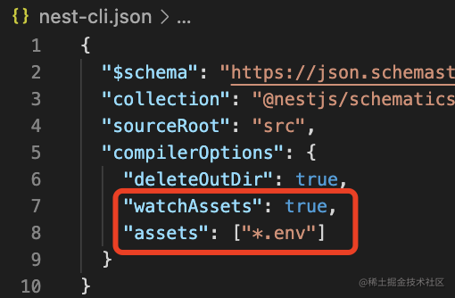 要注意的是,如果用了 .env 文件,需要保证它在 src 下,并且要在 nest-cli.json 里配置 assets 和 watchAssets,不然 build 的时候不会复制到 dist 下。