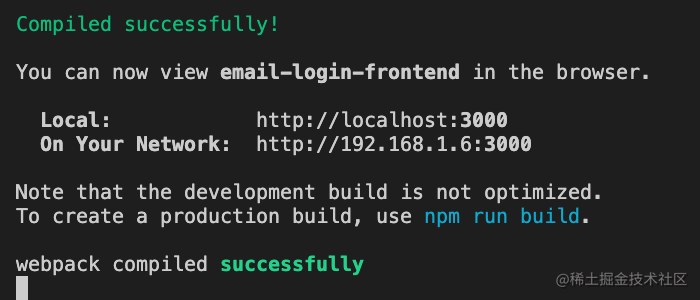 npx create-react-app email-login-frontend然后进入项目把开发服务跑起来: