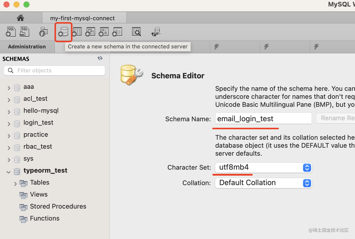 export class AppModule {}然后我们在 mysql workbench 创建个新的 database: