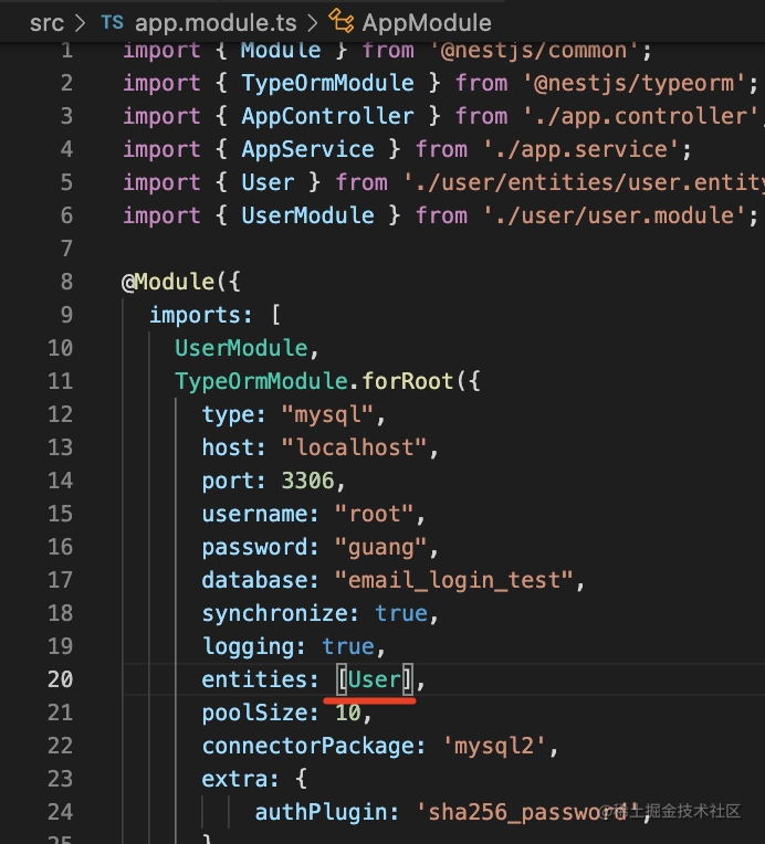 npm install --save @nestjs/typeorm typeorm mysql2在 AppModule 引入 TypeOrmModule: