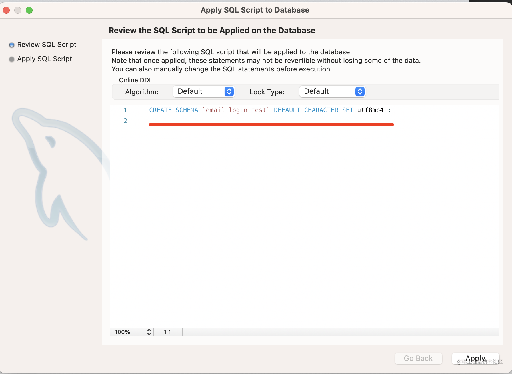 输入 database 或者叫 schema 的名字,指定字符集为 utf8mb4。