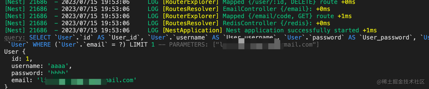 可以看到服务端通过了校验,并且从数据库中查询出了用户信息: