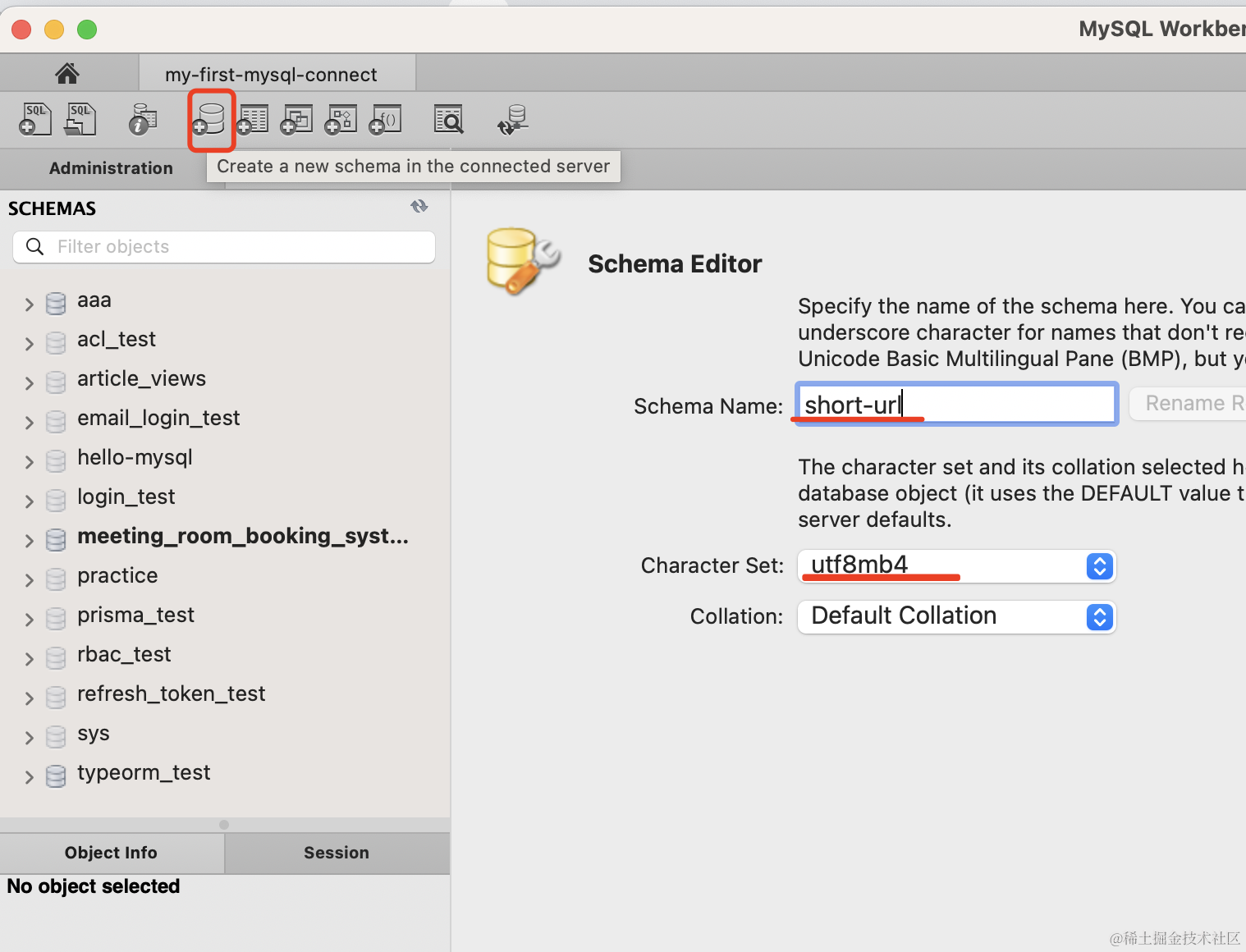 指定名字、字符集为 utf8mb4,然后点击右下角的 apply。